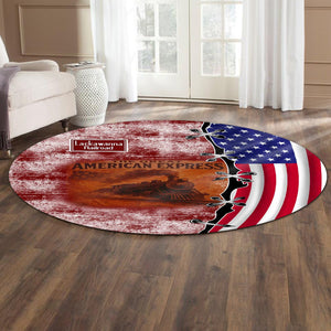 Railspirit Delaware, Lackawanna and Western Railroad Round Mat Retro American Express Train With USA Flag DL&W Round Mat
