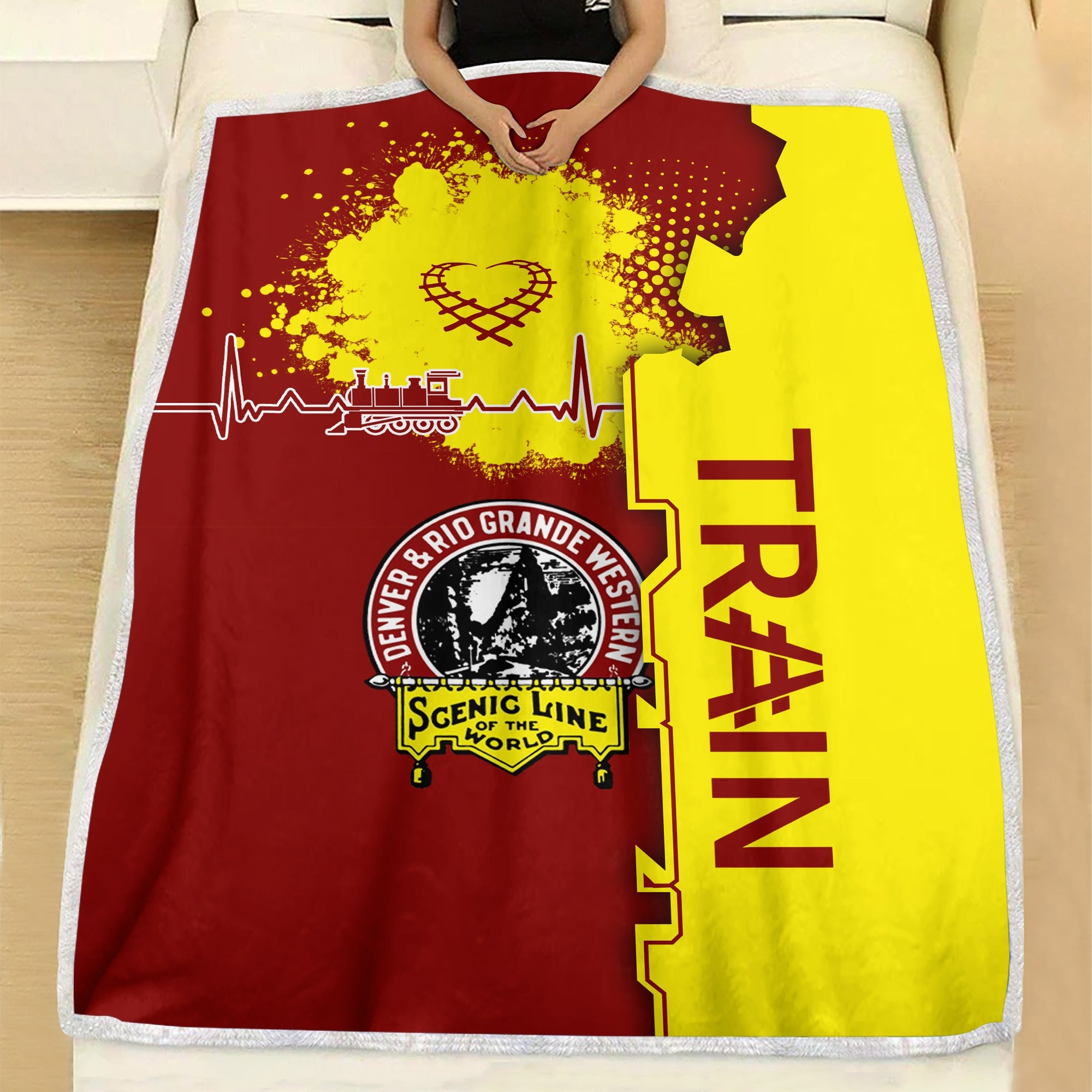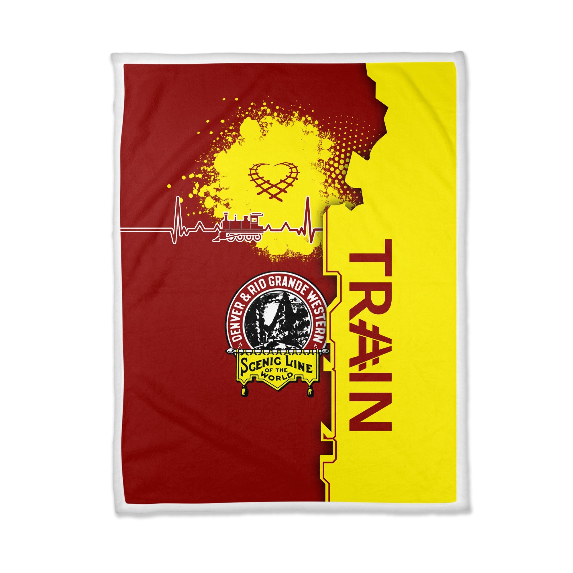 Railspirit Denver and Rio Grande Western Railroad Blanket Engine Heartbeat and Track Love Style Blanket Gift Idea For Train Lovers