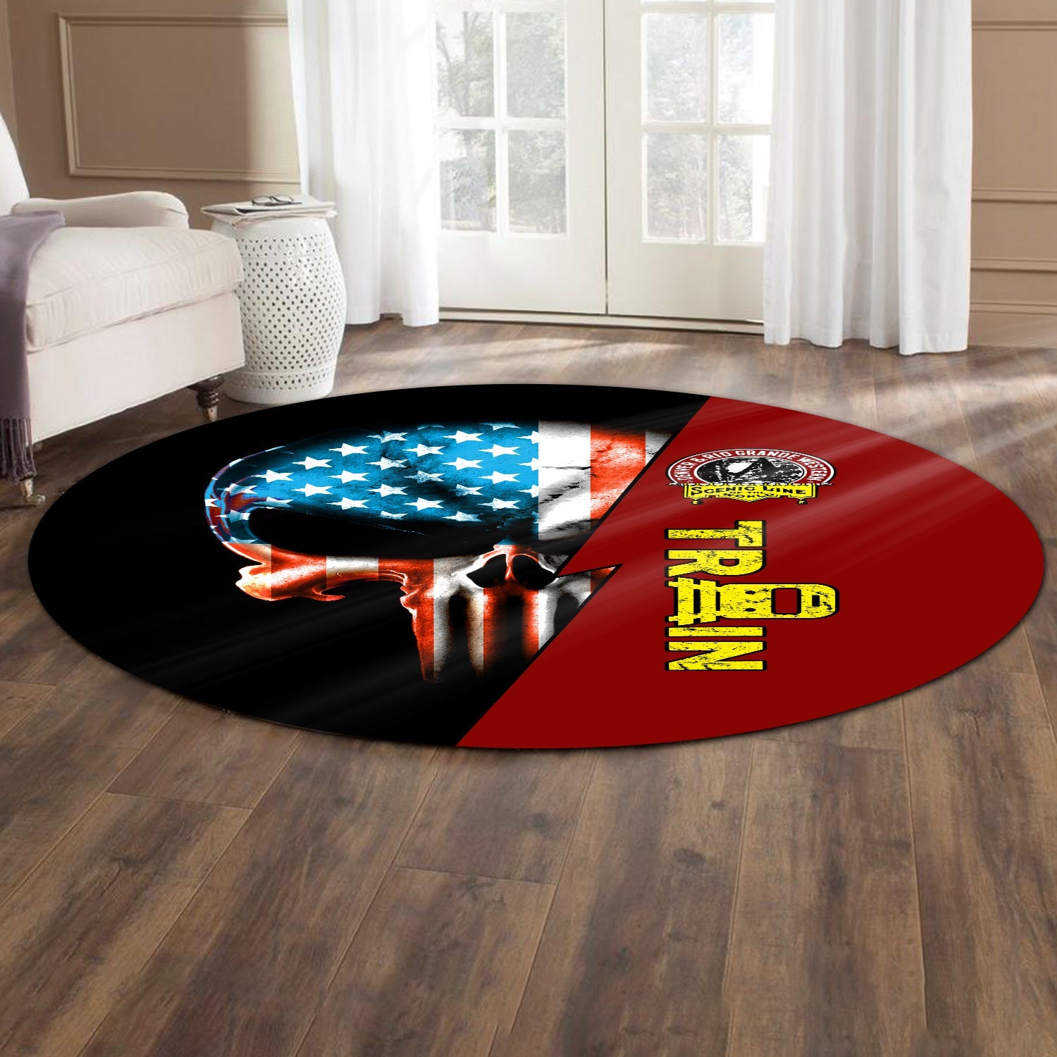 Railspirit Denver and Rio Grande Western Railroad Round Mat Train Skull American Flag Style Rug All Over Print