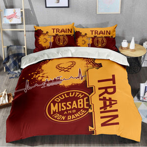 Railspirit Duluth, Missabe, & Iron Range Railroad Bedding Set Engine Heartbeat and Track Love Style Bedding Set Gift Idea For Train Lovers