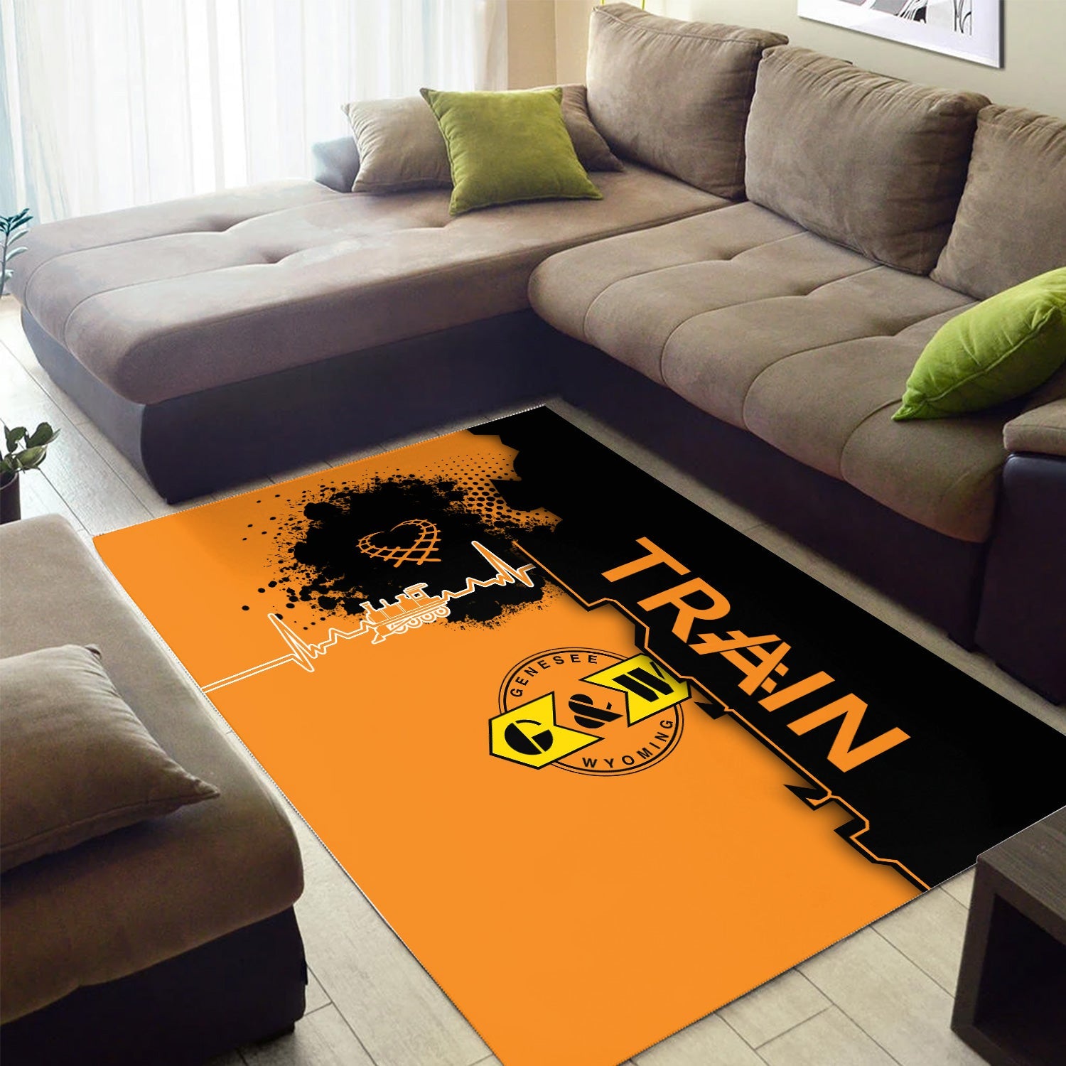 Railspirit Genesee & Wyoming Inc. Railroad Area Rug Engine Heartbeat and Track Love Style Rug Gift Idea For Train Lovers