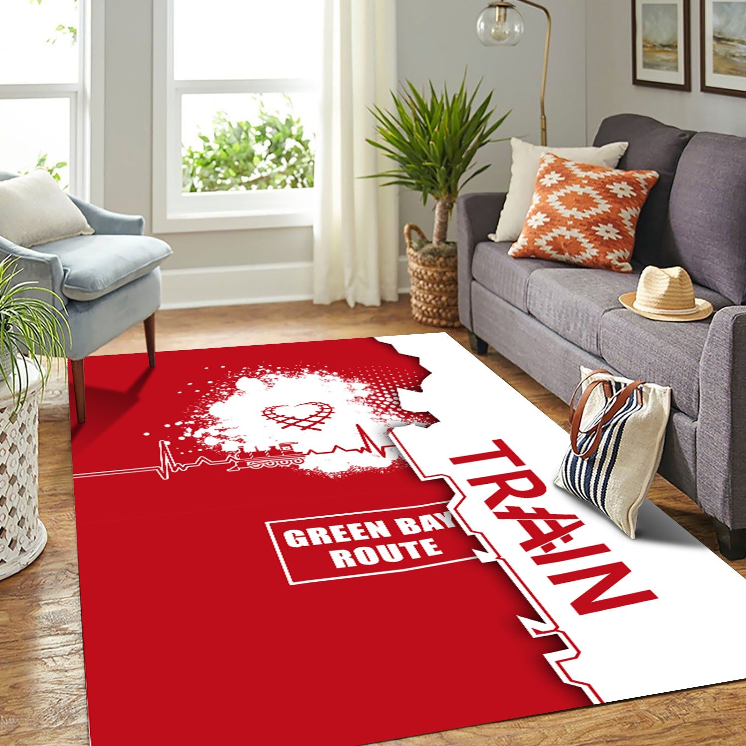 Railspirit Green Bay & Western Railroad Area Rug Engine Heartbeat and Track Love Style Rug Gift Idea For Train Lovers