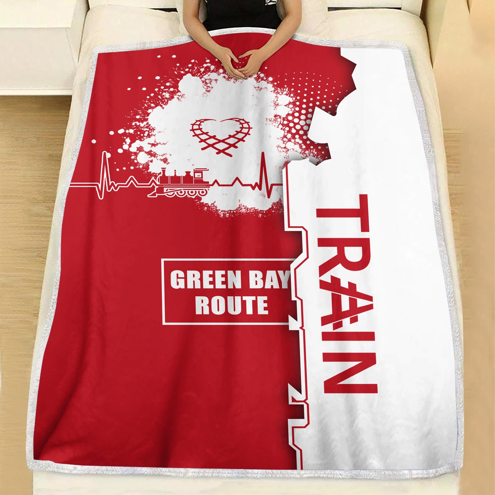 Railspirit Green Bay & Western Railroad Blanket Engine Heartbeat and Track Love Style Blanket Gift Idea For Train Lovers