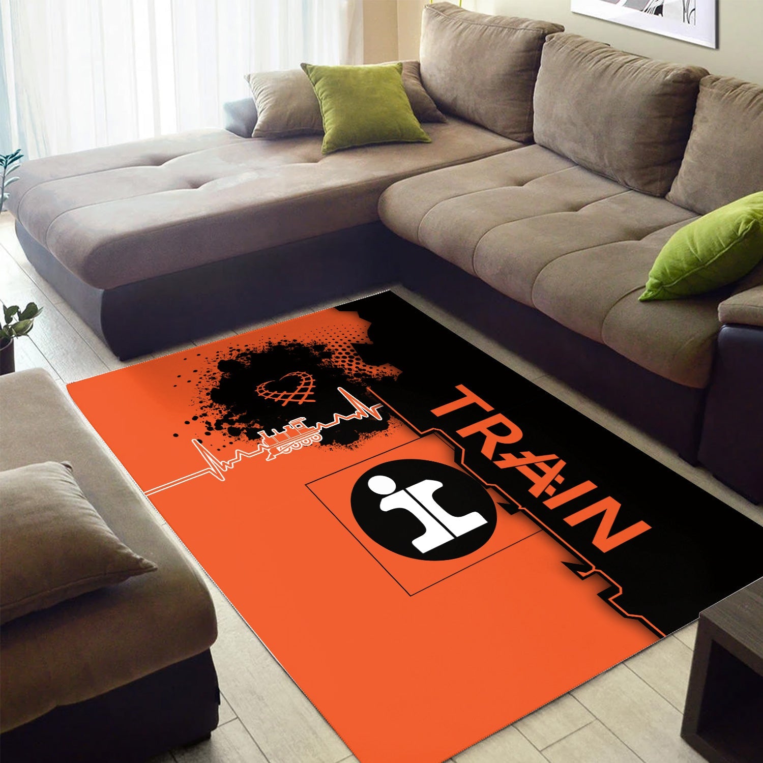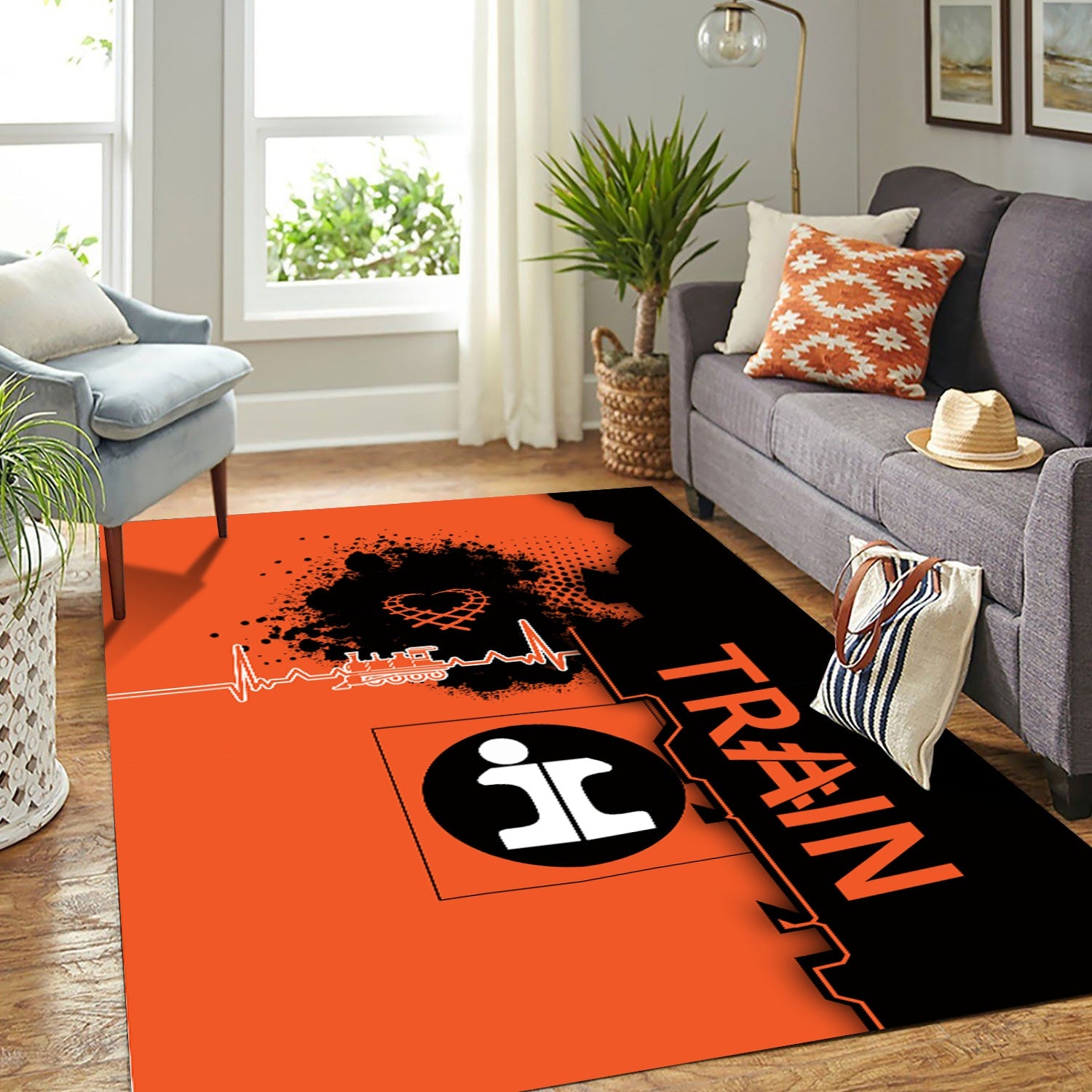 Railspirit Illinois Central Railroad Area Rug Engine Heartbeat and Track Love Style Rug Gift Idea For Train Lovers