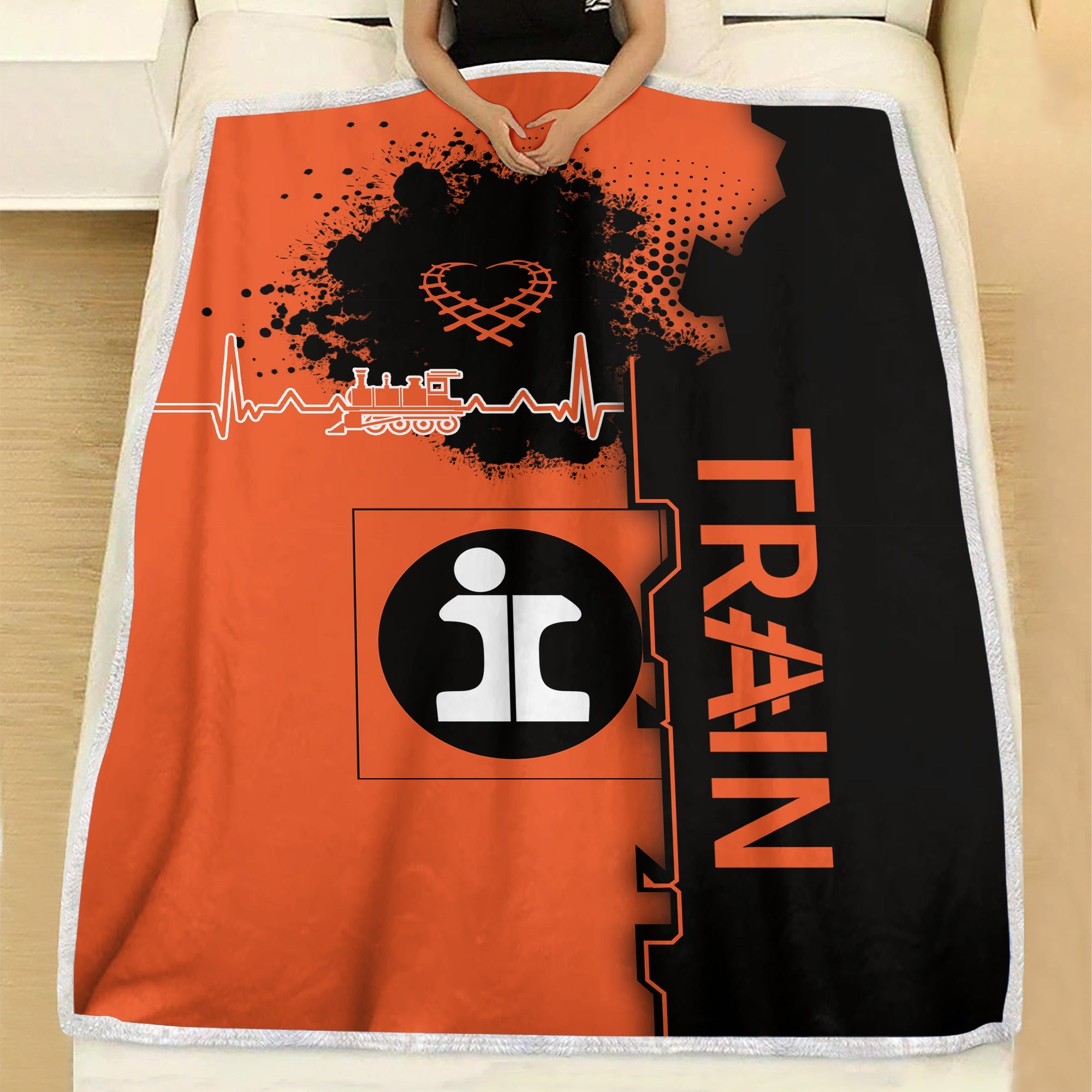 Railspirit Illinois Central Railroad Blanket Engine Heartbeat and Track Love Style Blanket Gift Idea For Train Lovers