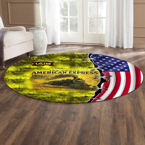 Railspirit Iowa Interstate Railroad Round Mat Retro American Express Train With USA Flag IAIS Round Mat