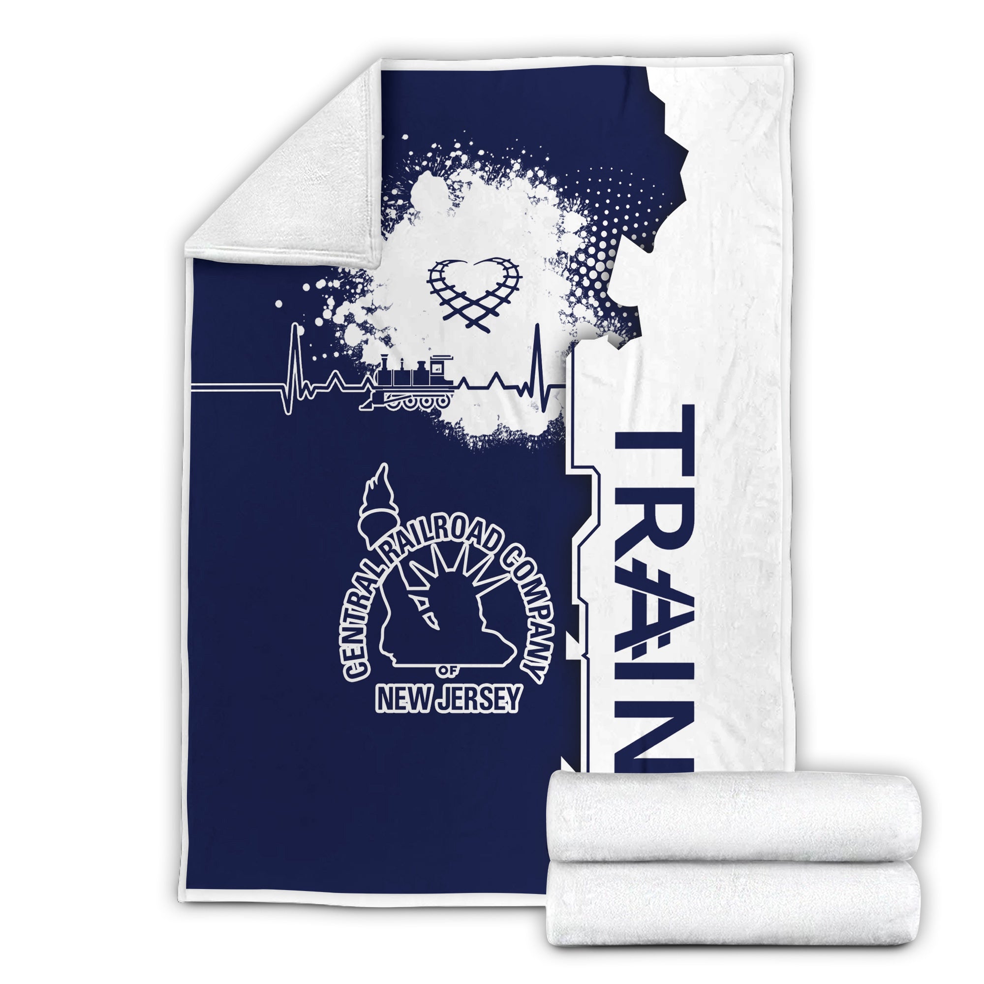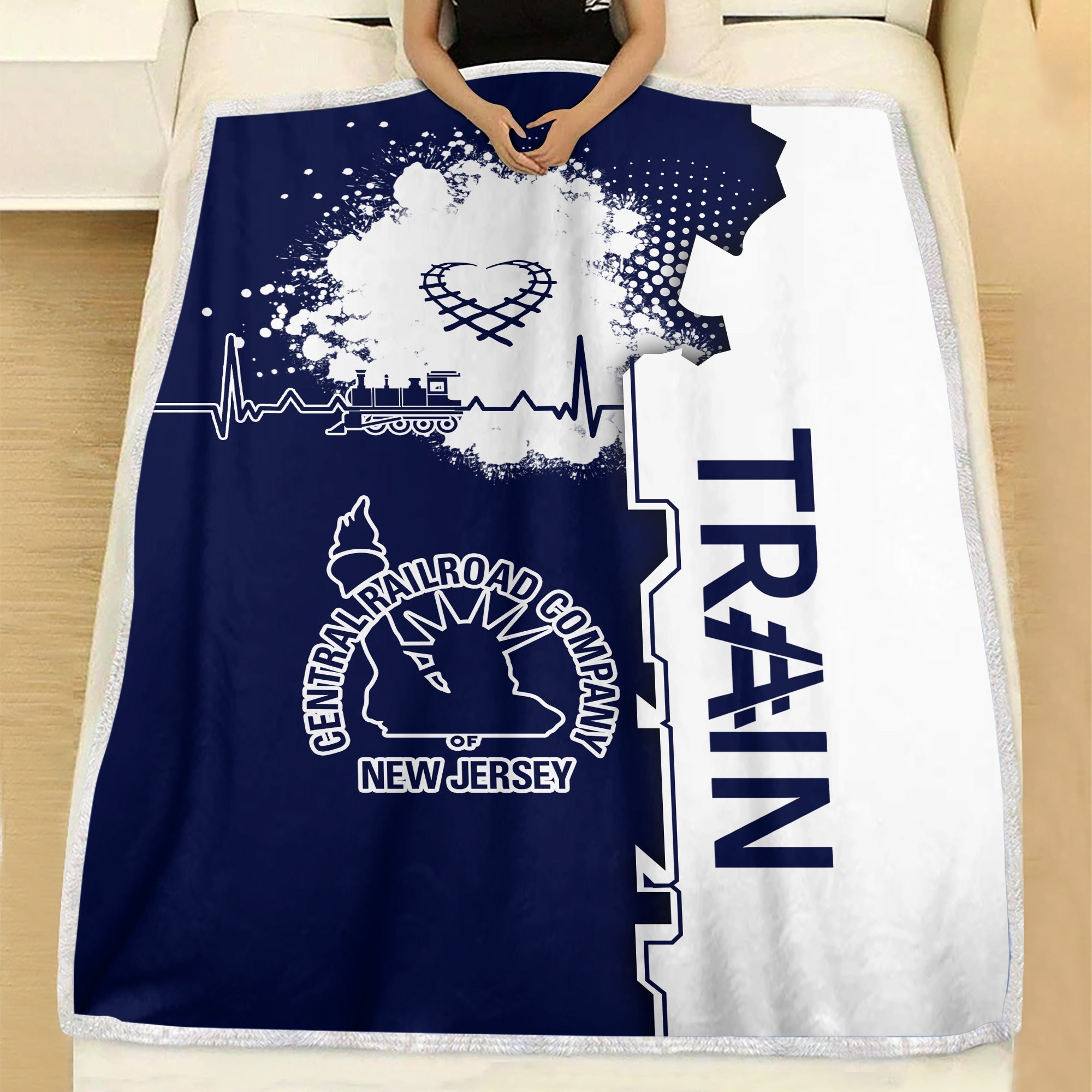 Railspirit CNJ Jersey Central Railroad Blanket Engine Heartbeat and Track Love Style Blanket Gift Idea For Train Lovers