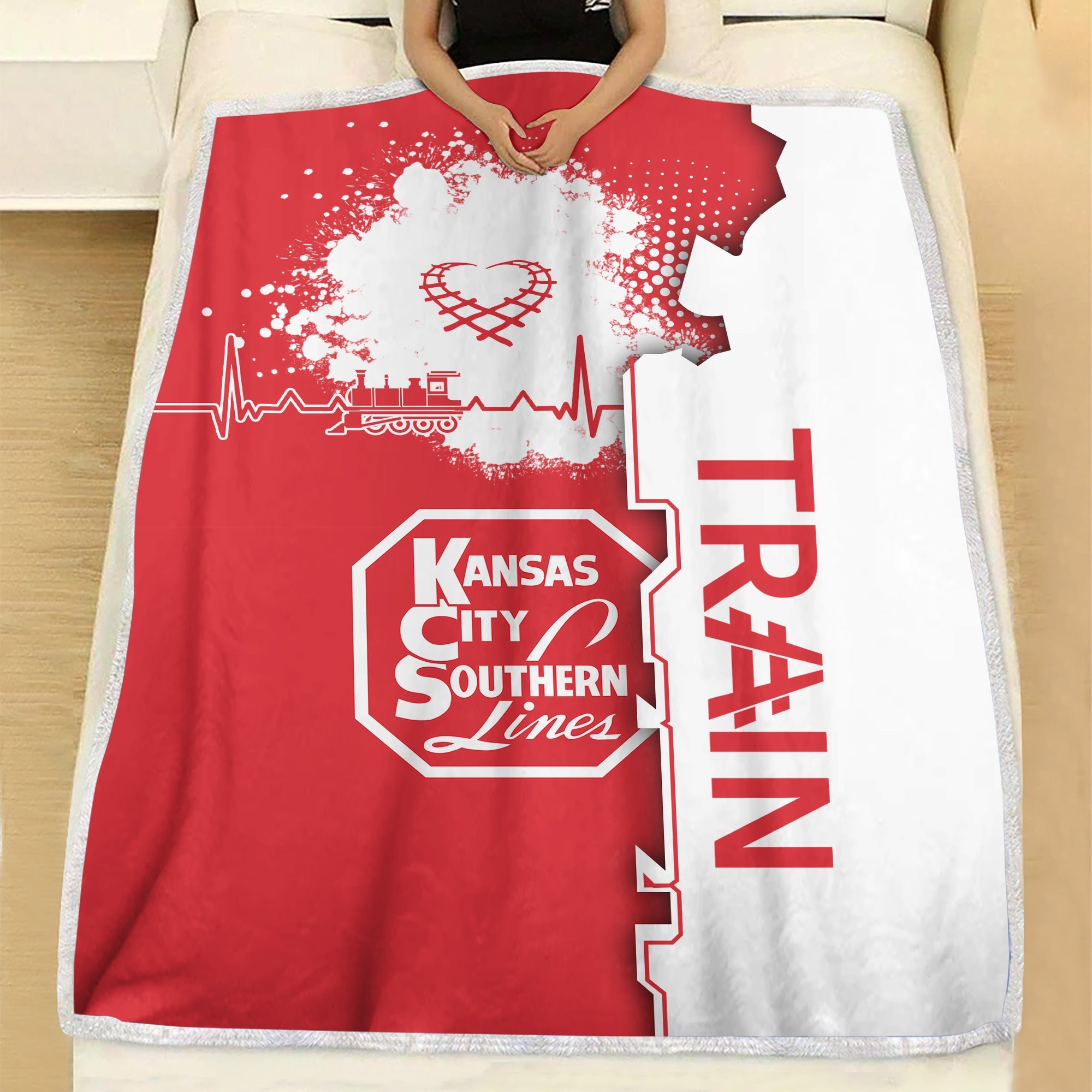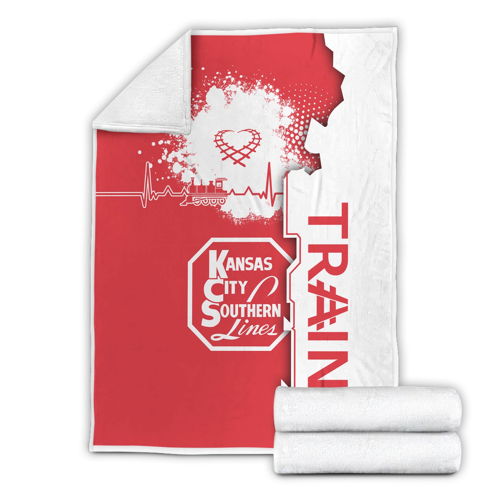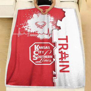 Railspirit Kansas City Southern Blanket Engine Heartbeat and Track Love Style Blanket Gift Idea For Train Lovers