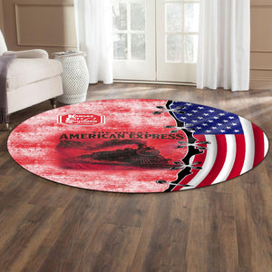 Railspirit Kansas City Southern Round Mat Retro American Express Train With USA Flag Round Mat
