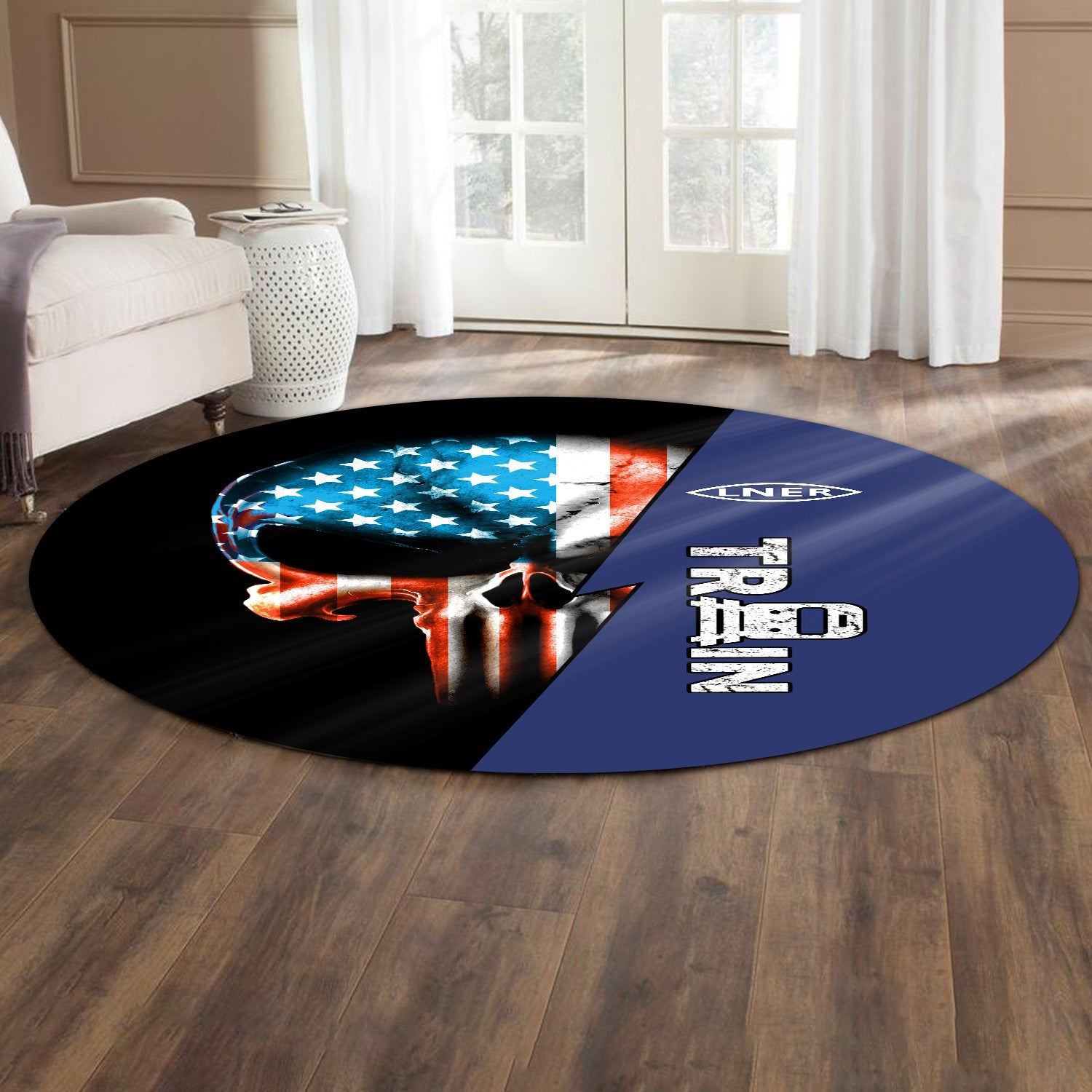 Railspirit London and North Eastern Railway Round Mat Train Skull American Flag Style Rug All Over Print