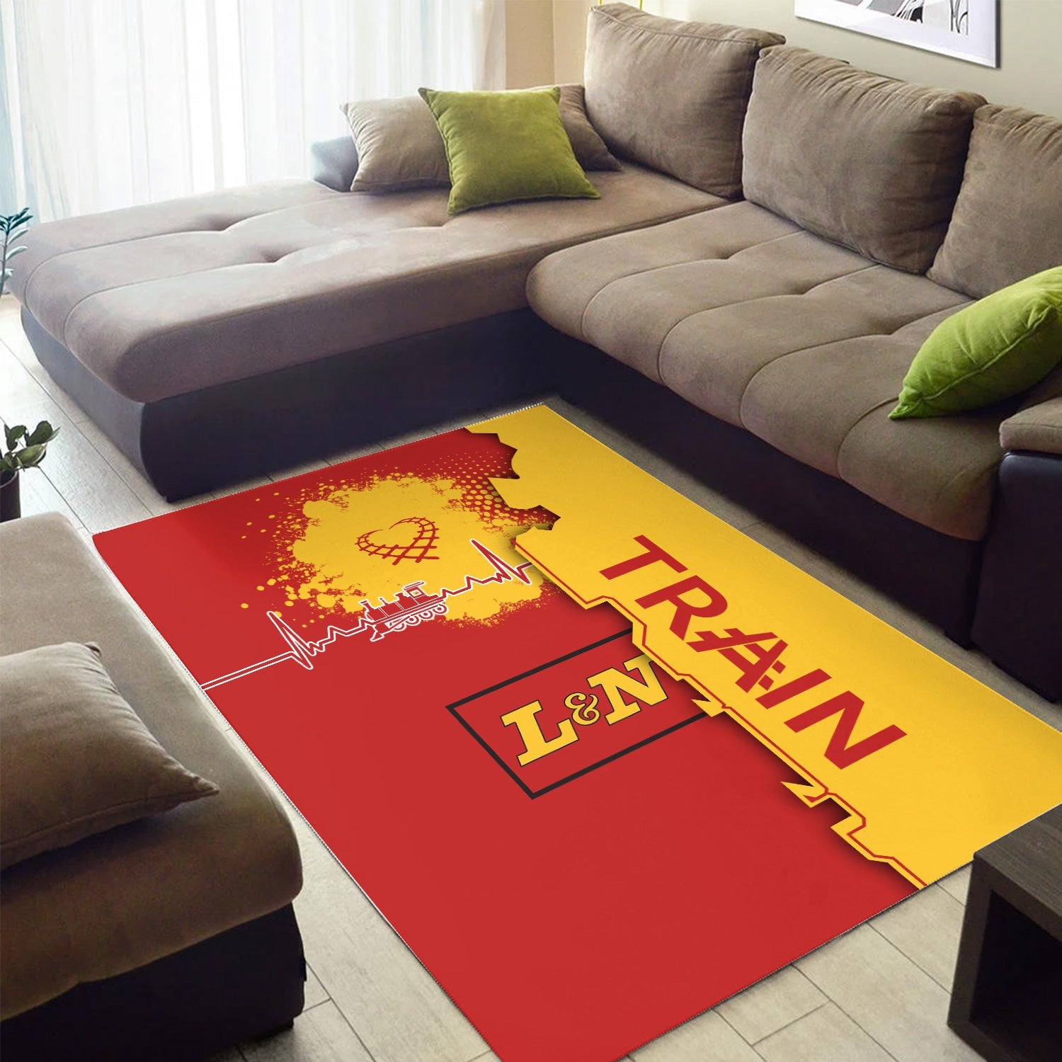 Railspirit Louisville and Nashville Railroad Area Rug Engine Heartbeat and Track Love Style L&N Rug Gift Idea For Train Lovers