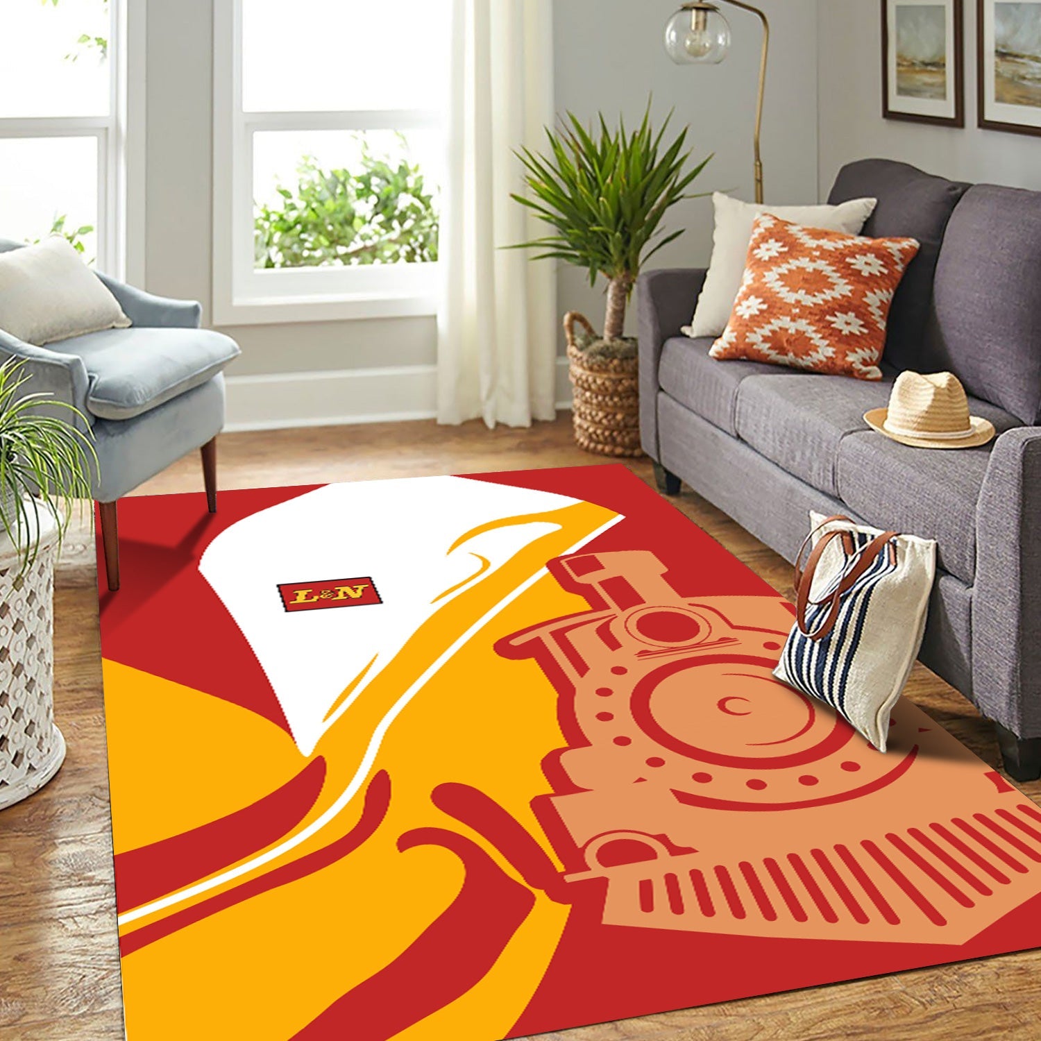 Railspirit Louisville and Nashville Railroad Area Rug Flame-Inspired Style L&N Rug Gift Idea For Train Lovers