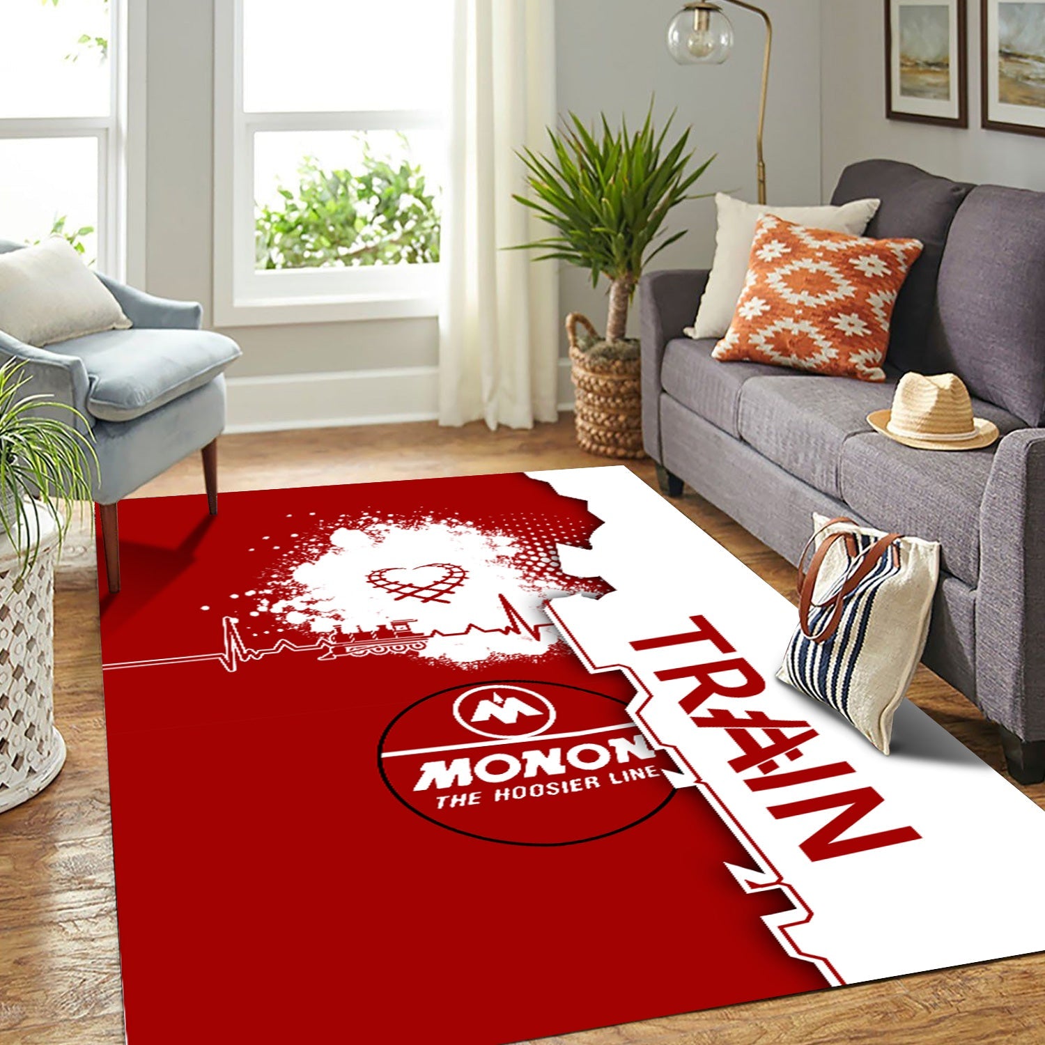 Railspirit Monon Railroad Area Rug Engine Heartbeat and Track Love Style Rug Gift Idea For Train Lovers