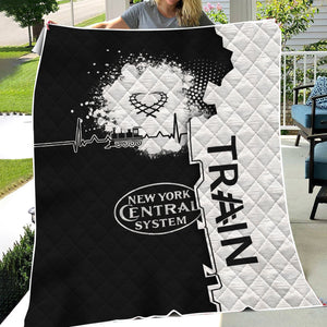 Railspirit New York Central Railroad Premium Quilts Engine Heartbeat and Track Love Style Quilts Gift Idea For Train Lovers
