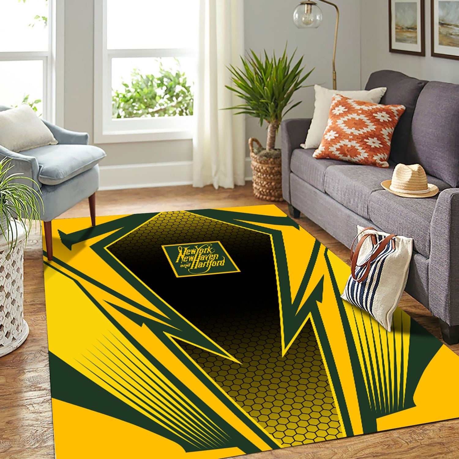 Railspirit New York, New Haven and Hartford Railroad Area Rug Lightning Graphic Style New Haven Railroad Rug Gift Idea For Train Lover