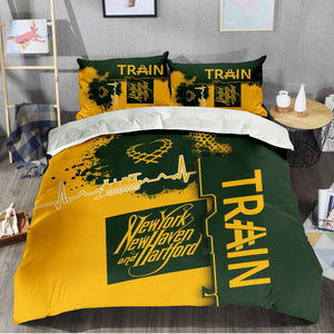 Railspirit New York, New Haven and Hartford Railroad Bedding Set Engine Heartbeat and Track Love Style New Haven Railroad Bedding Set
