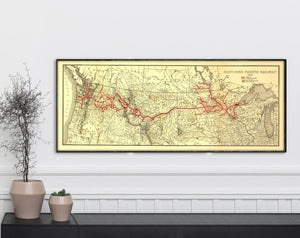 Old Map Canvas Of Northern Pacific Railways Map Canvas, Vintage Antique Map Canvas Of United States Train Retro Map Canvas