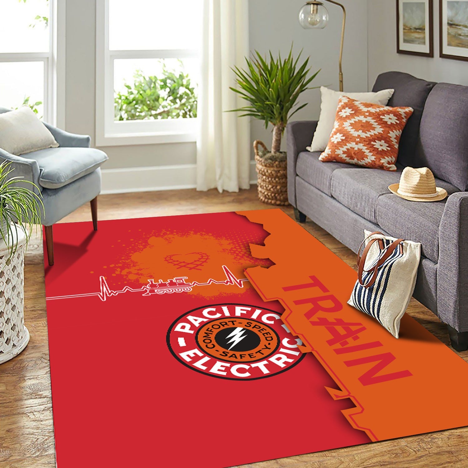 Railspirit Pacific Electric Railroad Area Rug Engine Heartbeat and Track Love Style Rug Gift Idea For Train Lovers