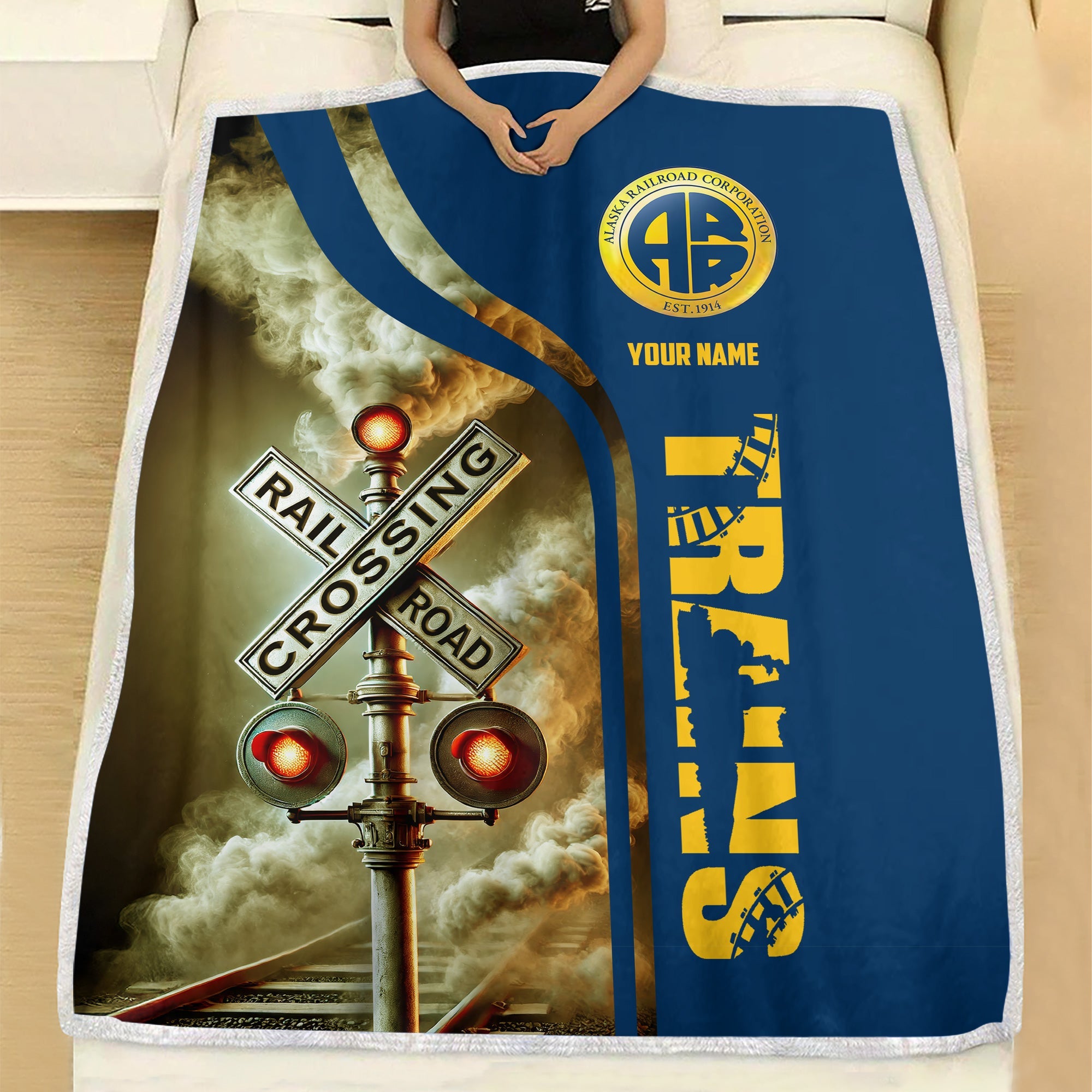 Railspirit Personalized Alaska Railroad Blanket Railroad Crossing Sign Blanket All Over Print