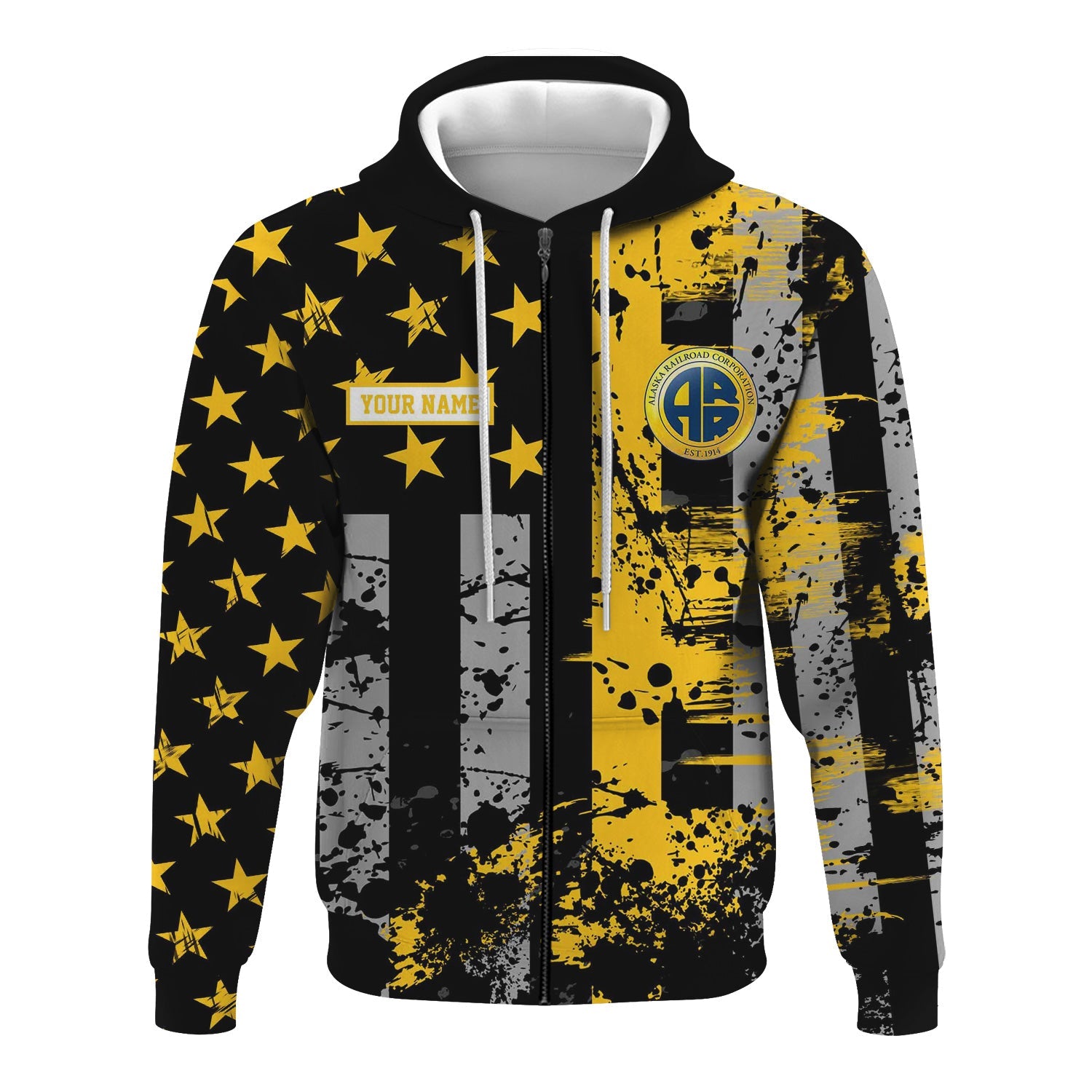 Railspirit Personalized Alaska Railroad Hoodie Artistic Paint American Flag Style Train Zip Up Hoodie