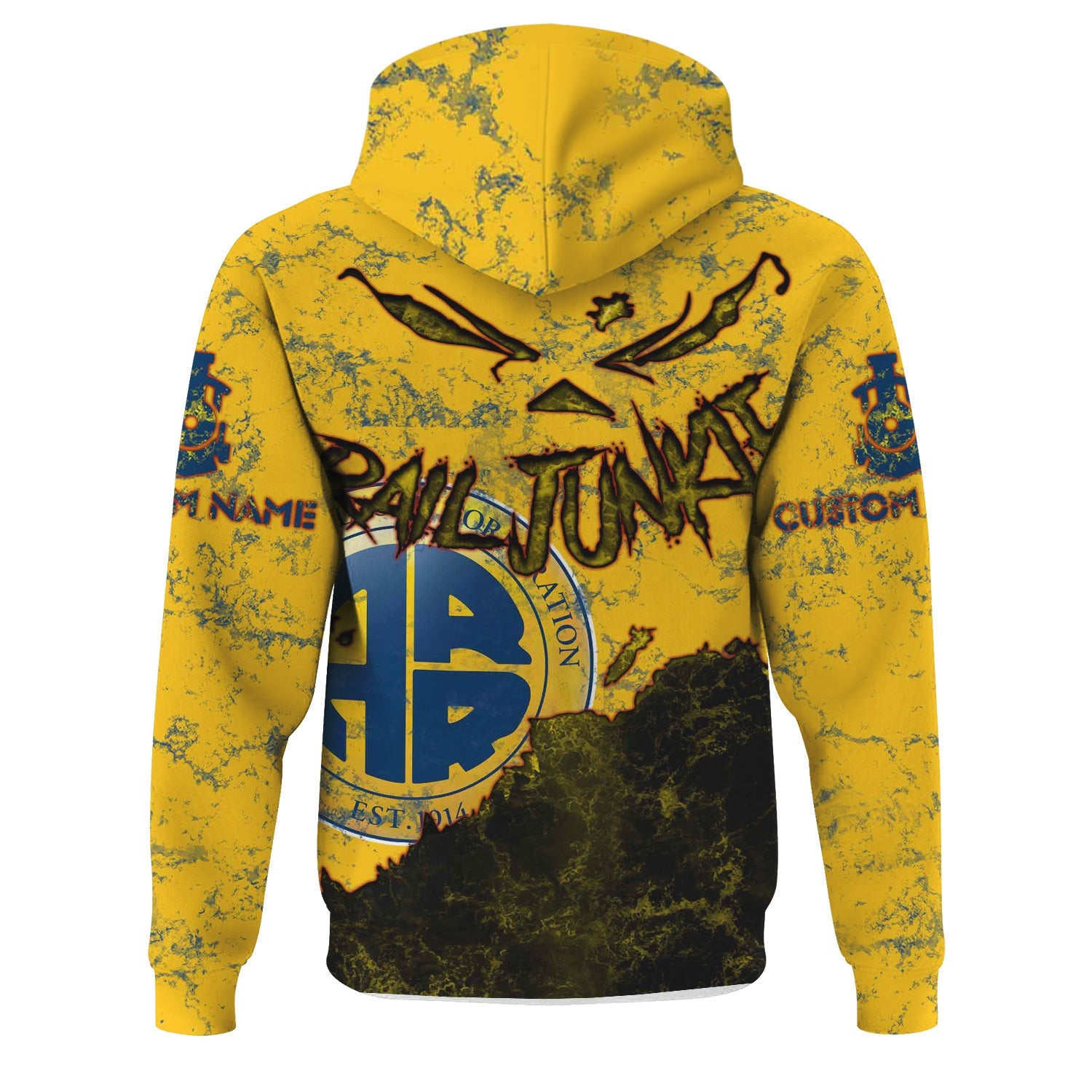 Railspirit Personalized Alaska Railroad Hoodie Torn Graphic Style Train Zip Up Hoodie For Rail Junkie