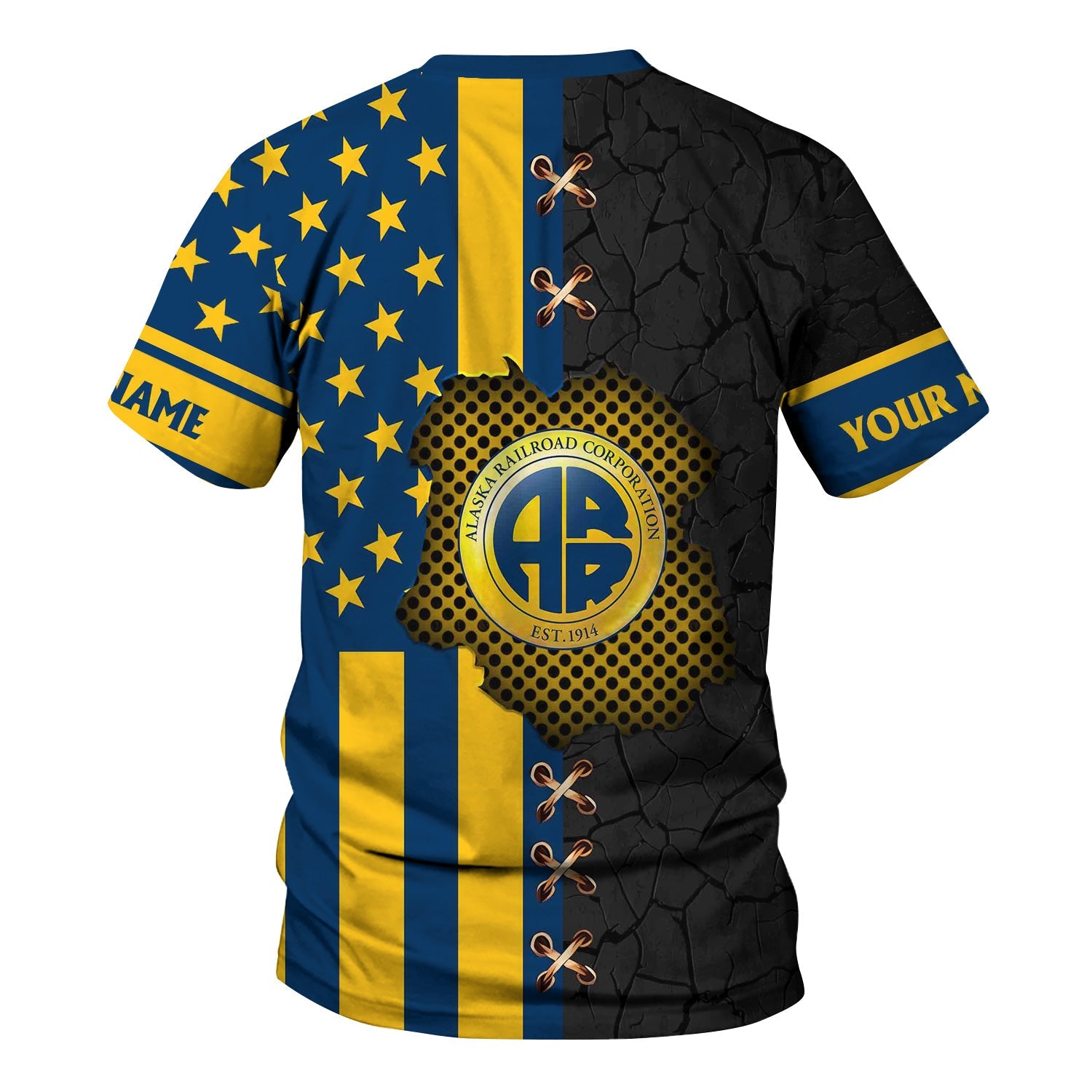 Railspirit Personalized Alaska Railroad T-Shirt American Flag with Crack Effect Train Shirt