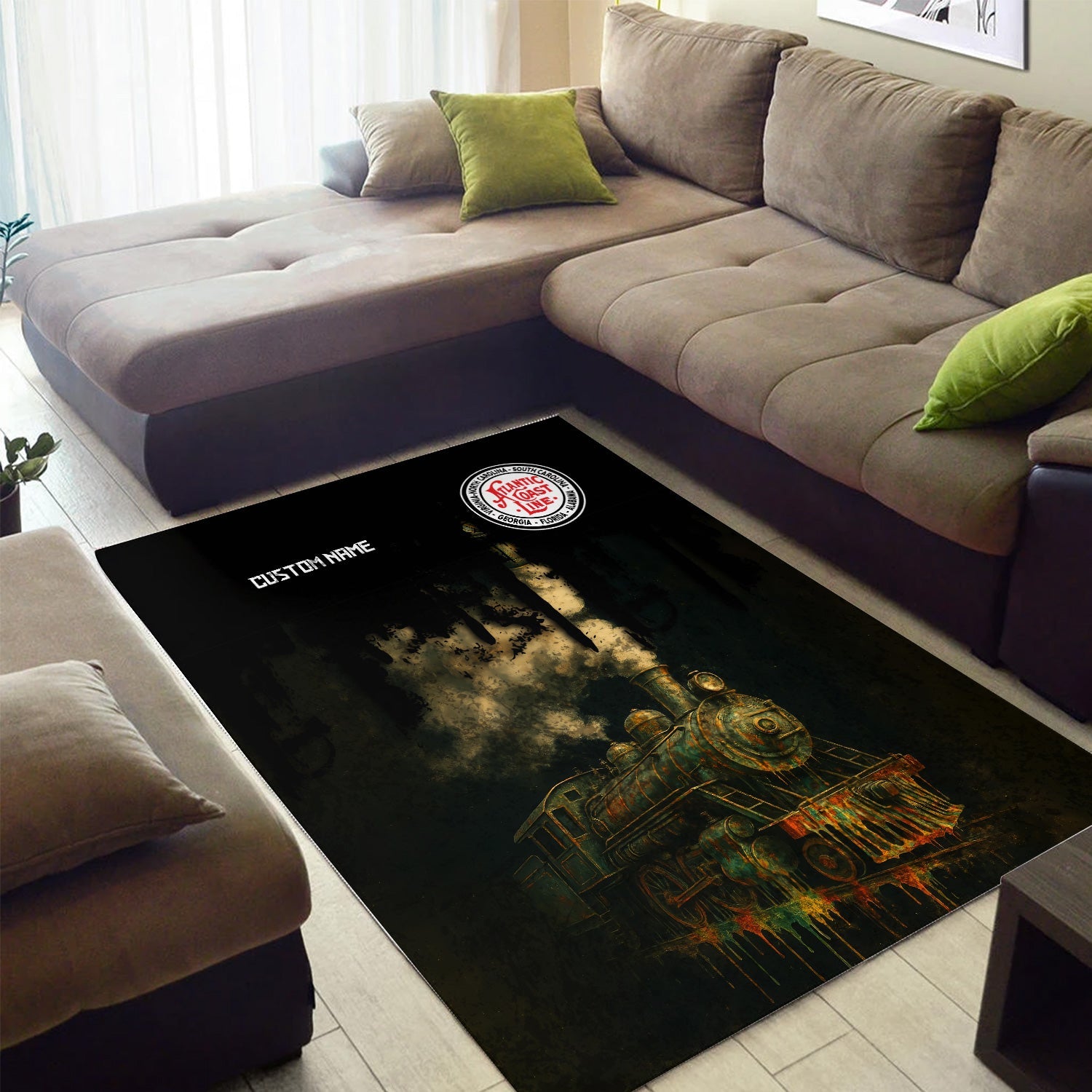 Railspirit Personalized Atlantic Coast Line Railroad Area Rug Vintage Train Art Style Rug For Locomotive Fans