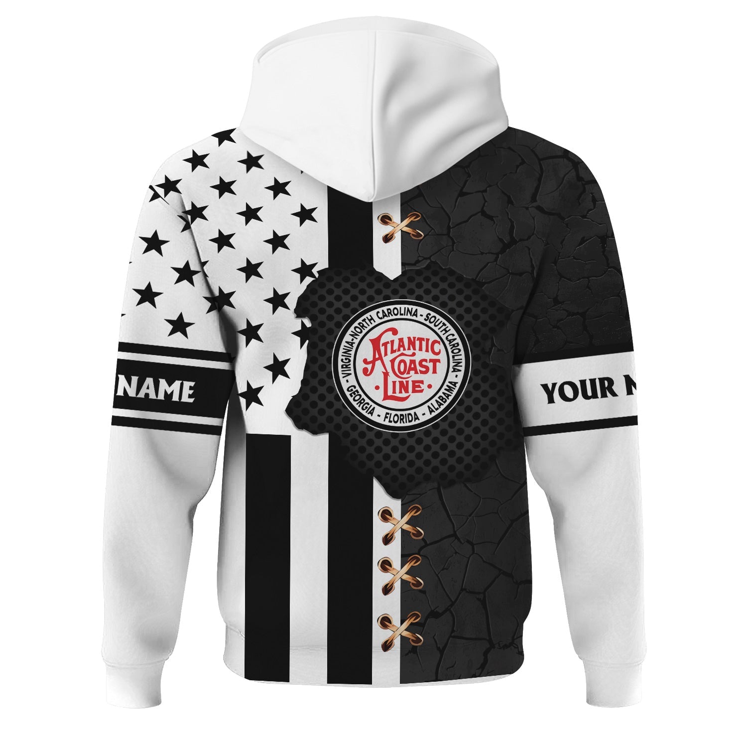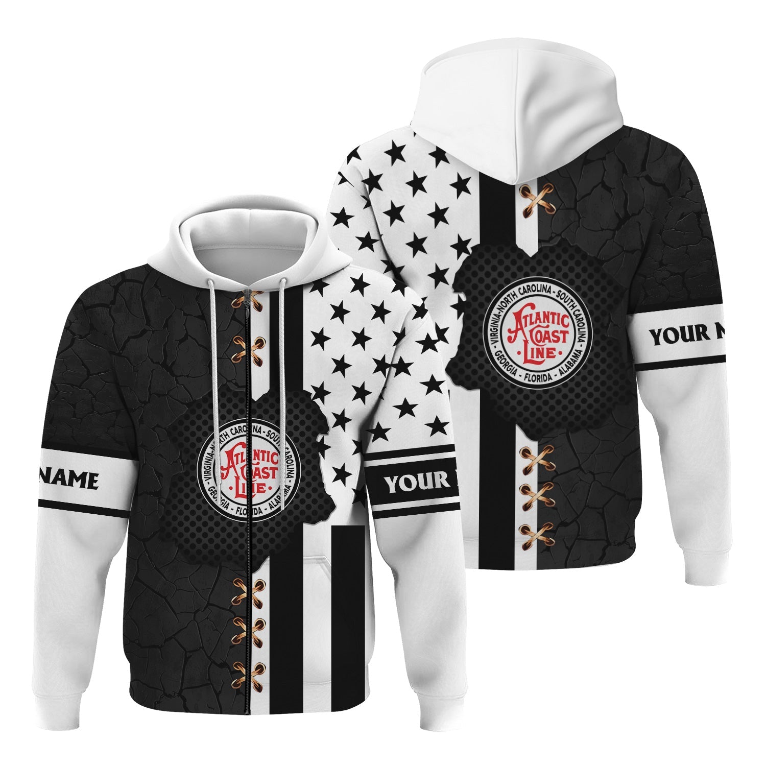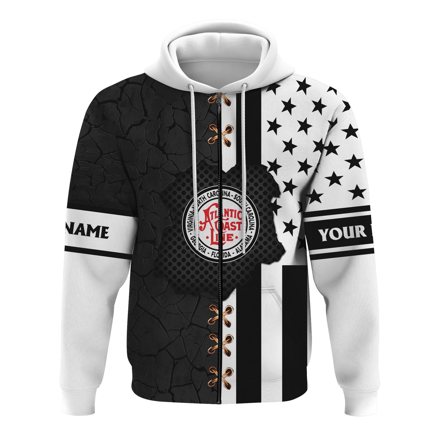 Railspirit Personalized Atlantic Coast Line Railroad Hoodie American Flag with Crack Effect Train Zip Up Hoodie