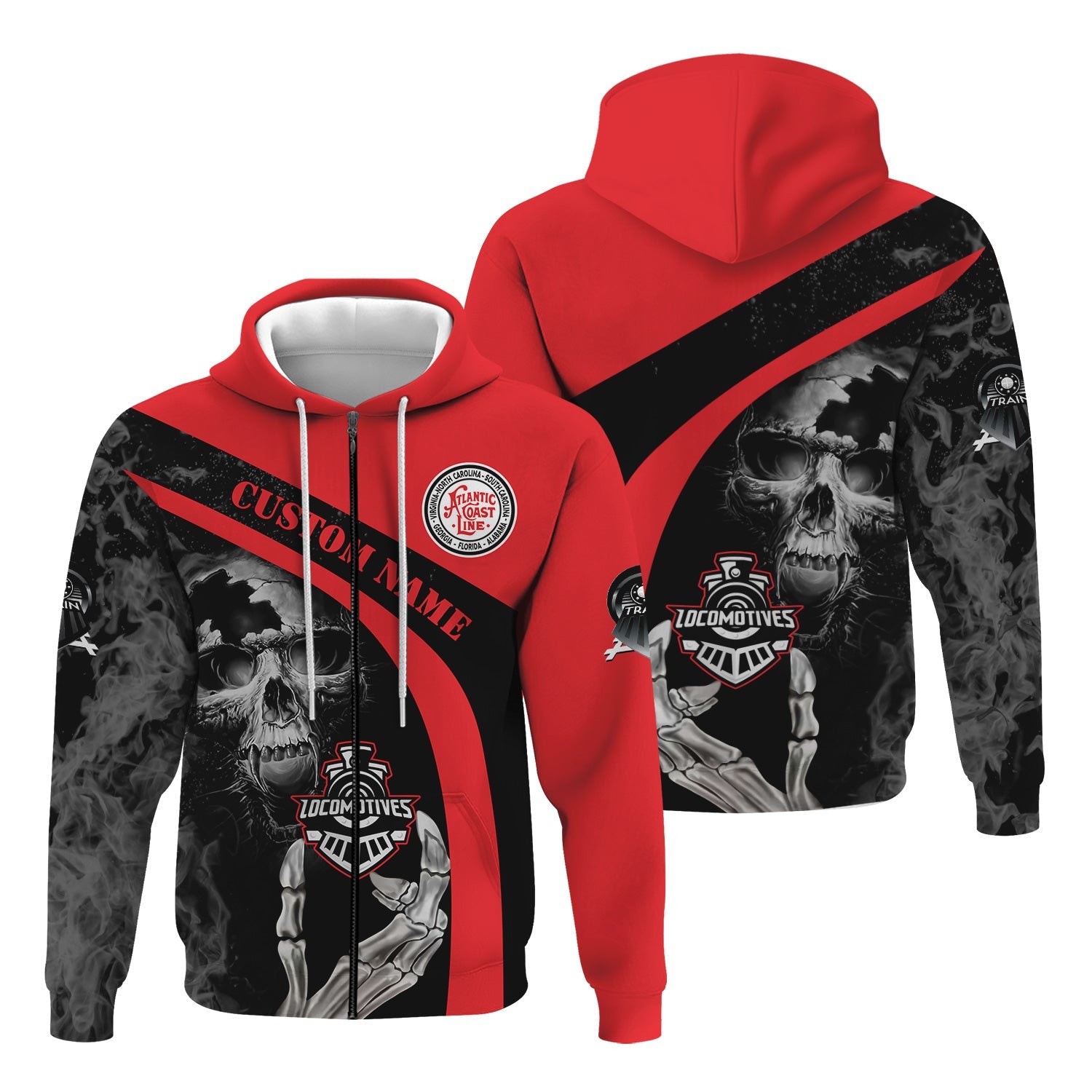 Railspirit Personalized Atlantic Coast Line Railroad Hoodie Flame Skull Design Train Zip Up Hoodie for Locomotive Fans