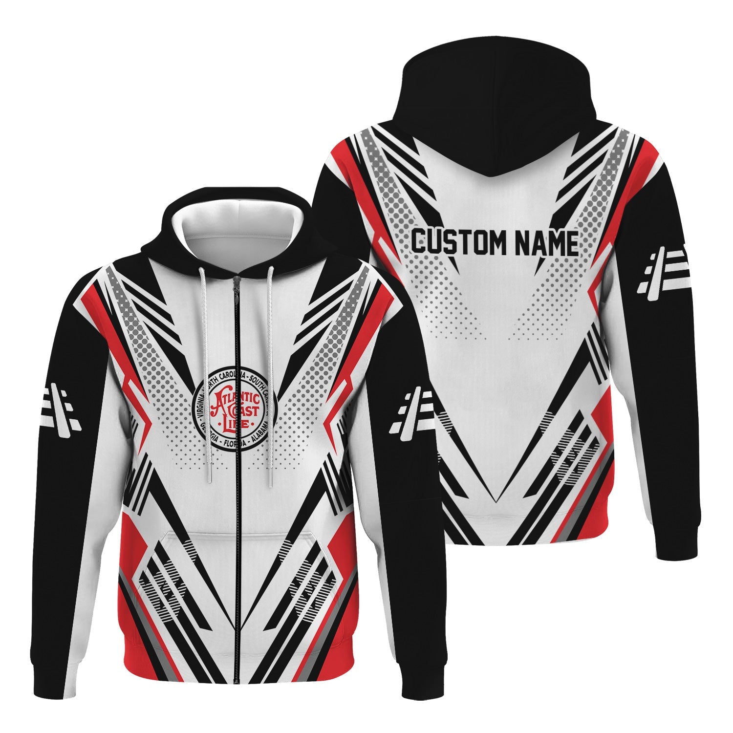 Railspirit Personalized Atlantic Coast Line Railroad Hoodie Railroad Tribute Design Train Zip Up Hoodie for Train Lovers