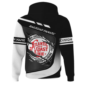 Railspirit Personalized Atlantic Coast Line Railroad Hoodie Ripped Texture Style Train Zip Up Hoodie For Railroad Fanatic