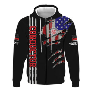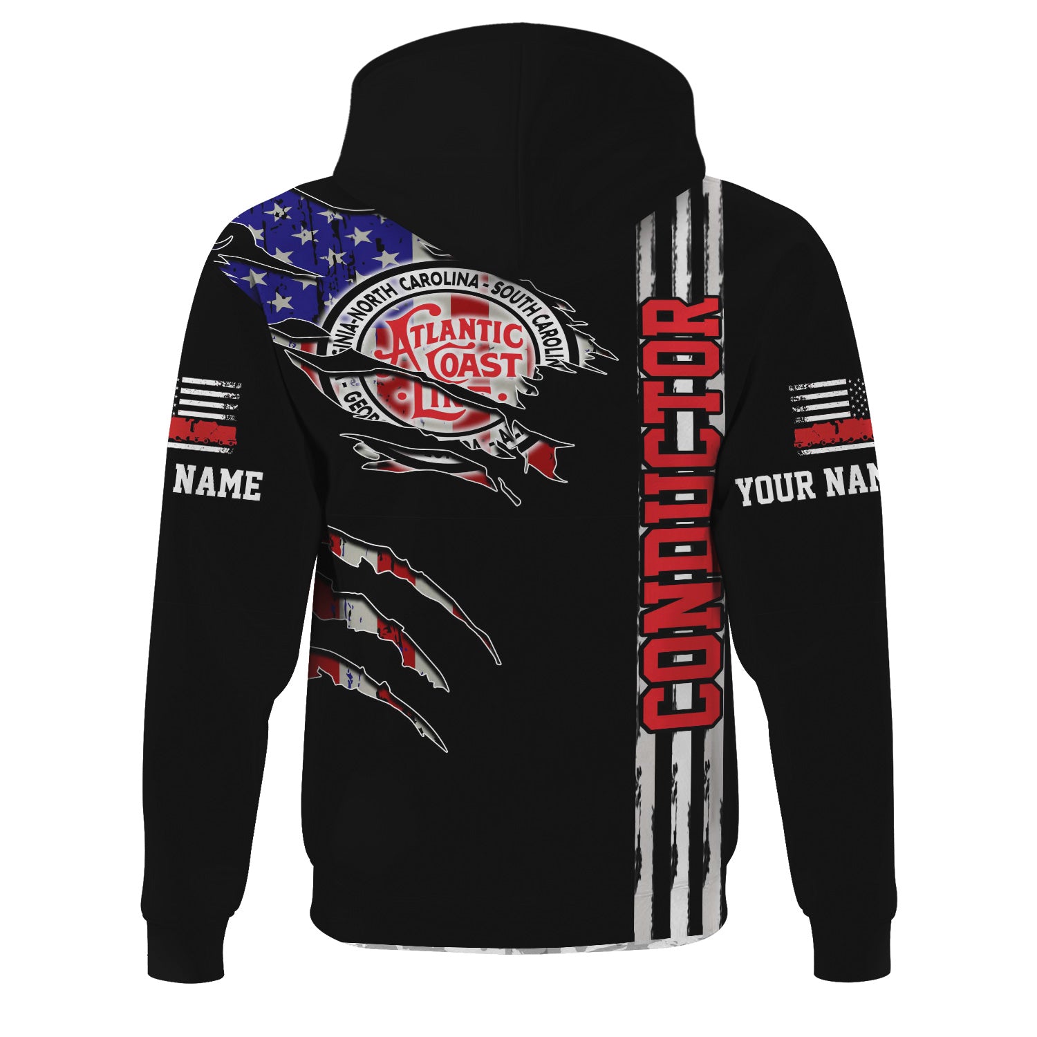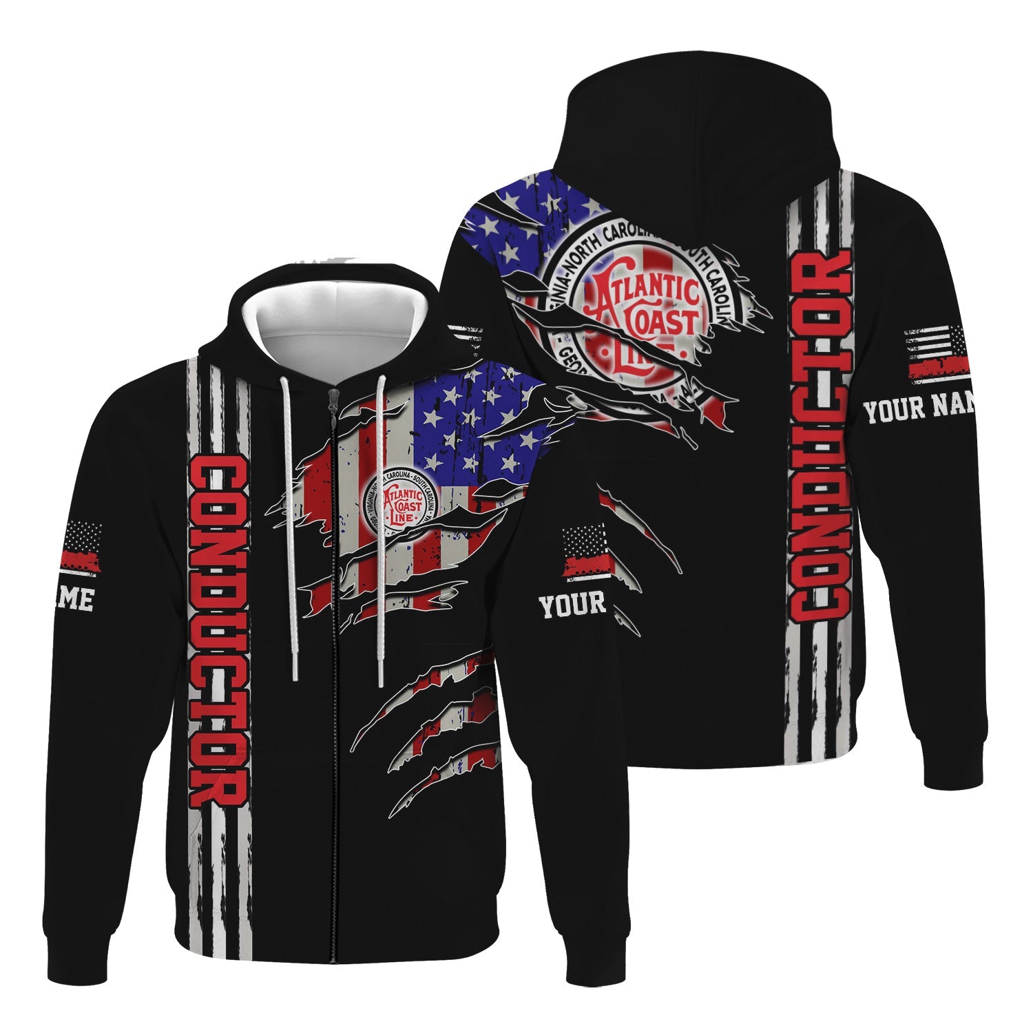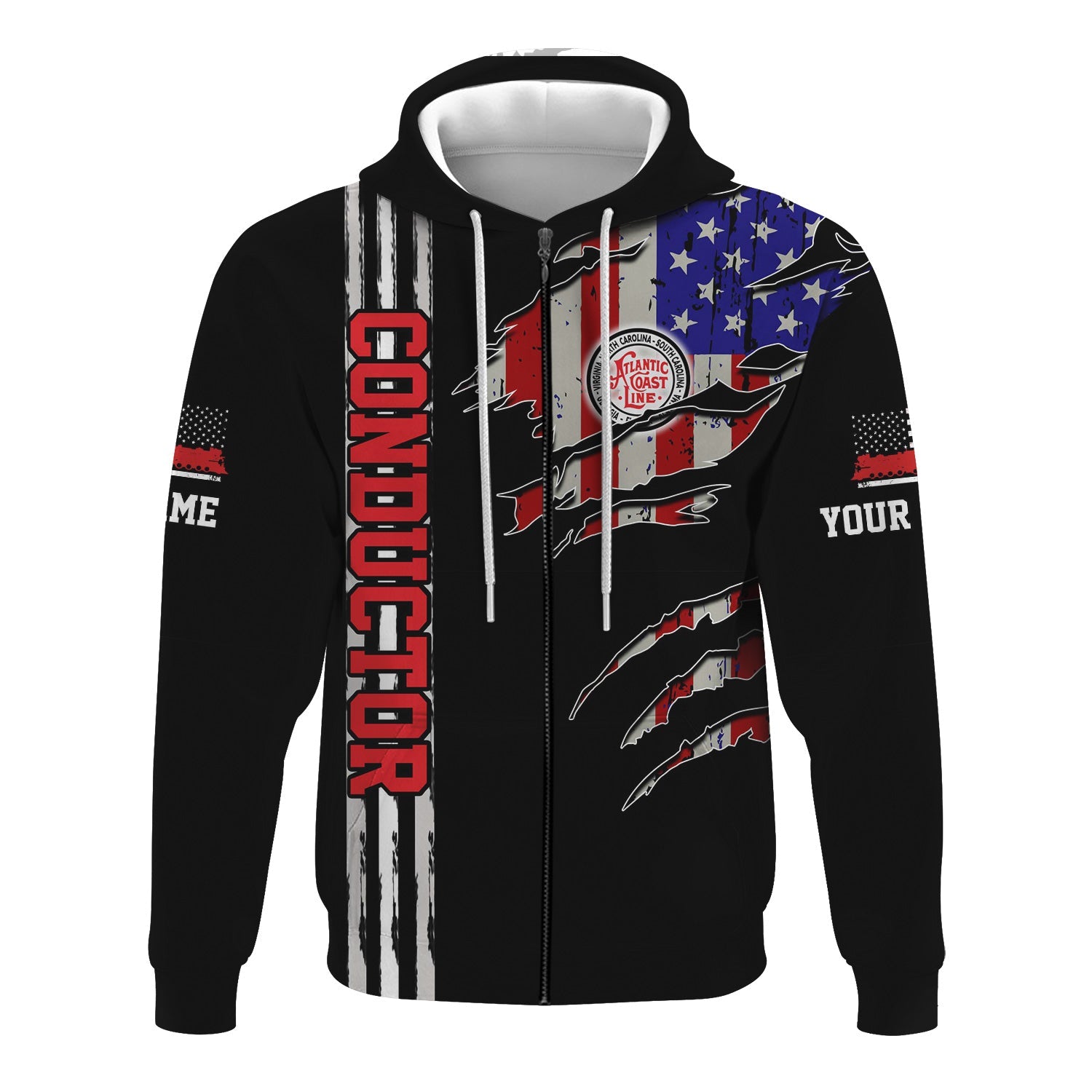 Railspirit Personalized Atlantic Coast Line Railroad Hoodie USA Flag Claw Art with Custom Job Train Zip Up Hoodie