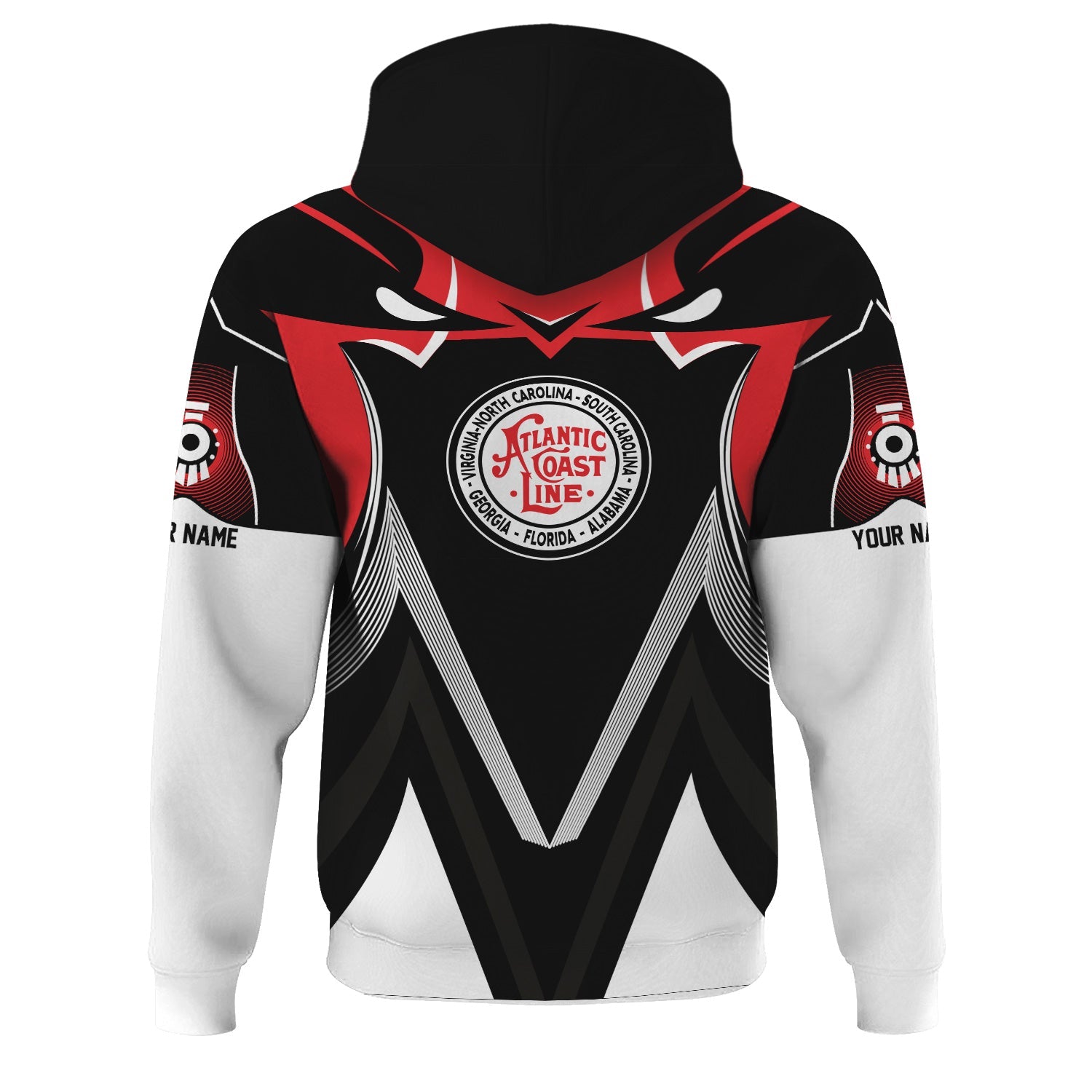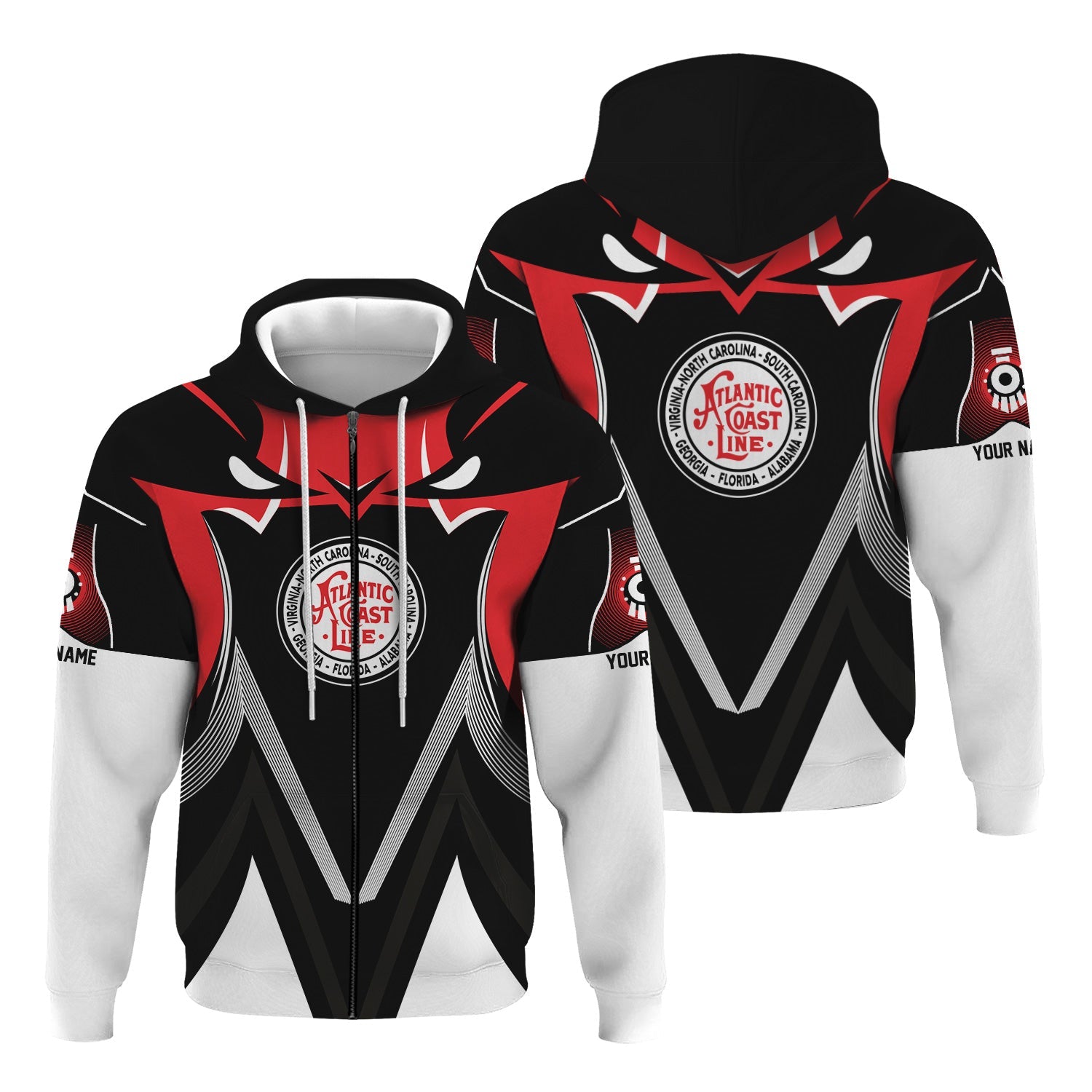 Railspirit Personalized Atlantic Coast Line Railroad Hoodie Vibrant Graphic Pattern Zip Up Hoodie For Train Enthusiasts
