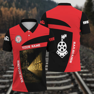 Railspirit Personalized Atlantic Coast Line Railroad Polo Shirt All Aboard Steam Train Movie Projector Style Shirt