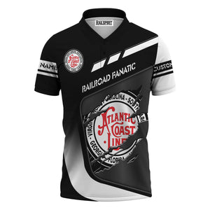 Railspirit Personalized Atlantic Coast Line Railroad Polo Shirt Ripped Texture Style Train Shirt For Railroad Fanatic