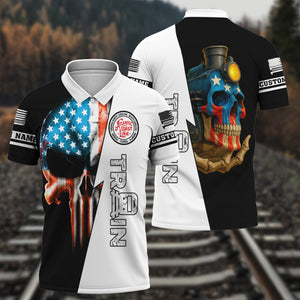 Railspirit Personalized Atlantic Coast Line Railroad Polo Shirt Train Skull American Flag Shirt All Over Print