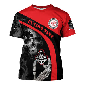 Railspirit Personalized Atlantic Coast Line Railroad T-Shirt Flame Skull Design Train Shirt for Locomotive Fans