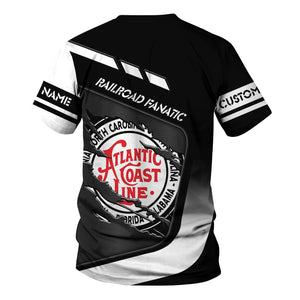 Railspirit Personalized Atlantic Coast Line Railroad T-Shirt Ripped Texture Style Train Shirt For Railroad Fanatic