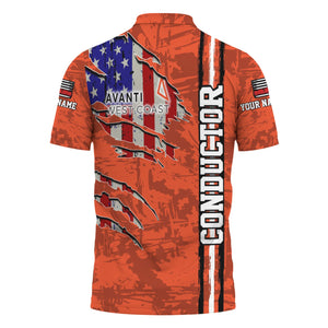Railspirit Personalized Avanti West Coast Polo Shirt USA Flag Claw Art with Custom Job Train Shirt