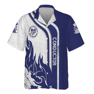 Railspirit Personalized B&O Great States Railroad Hawaiian Shirt Flame Design with Custom Job Position Train Shirt