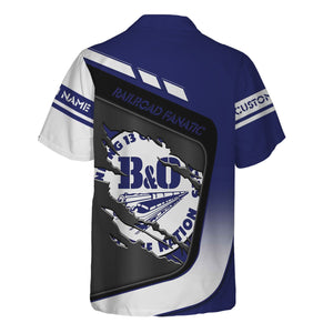 Railspirit Personalized B&O Great States Railroad Hawaiian Shirt Ripped Texture Style Train Shirt For Railroad Fanatic