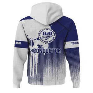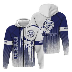 Railspirit Personalized B&O Great States Railroad Hoodie Skull Design with Custom Job Train Zip Up Hoodie for Trackhead Crew