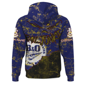 Railspirit Personalized B&O Great States Railroad Hoodie Torn Graphic Style Train Zip Up Hoodie For Rail Junkie