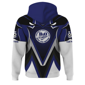 Railspirit Personalized B&O Great States Railroad Hoodie Vibrant Graphic Pattern Zip Up Hoodie For Train Enthusiasts