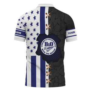 Railspirit Personalized B&O Great States Railroad Polo Shirt American Flag with Crack Effect Train Shirt
