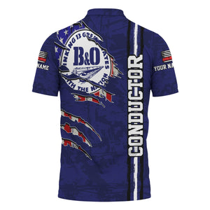 Railspirit Personalized B&O Great States Railroad Polo Shirt USA Flag Claw Art with Custom Job Train Shirt