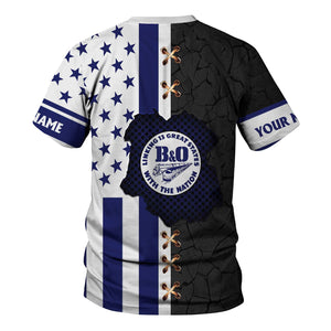 Railspirit Personalized B&O Great States Railroad T-Shirt American Flag with Crack Effect Train Shirt