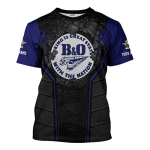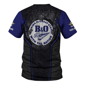 Railspirit Personalized B&O Great States Railroad T-Shirt Cracked Metal Design Train Shirt for Rail Enthusiasts
