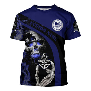 Railspirit Personalized B&O Great States Railroad T-Shirt Flame Skull Design Train Shirt for Locomotive Fans