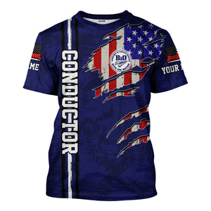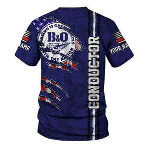 Railspirit Personalized B&O Great States Railroad T-Shirt USA Flag Claw Art with Custom Job Train Shirt